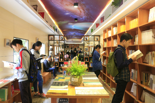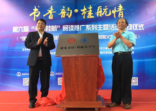 易忠和张艺兵共同为“独秀书房·桂航火车号”揭牌,开启桂航文化育人的“新地标”。作为广西唯一的航天特色本科院校,该校积极把依托航天办学,依托工业兴学的办学理念融入校园文化建设,与广西师大出版社合作,结合学校航天特色文化,巧妙设计了车厢式阅读空间,打造了广西首家“火车书吧”,推出2000余种图书供师生阅读购买。今后,学校将充分利用行业的优势资源,进一步加强校企合作,共同举办一系列阅读主题活动,把“独秀书房?桂航火车号”打造成师生阅读与交流的新平台。