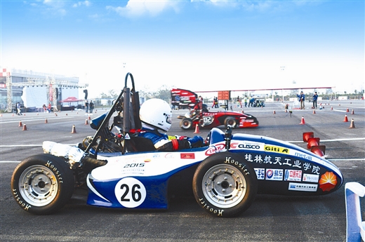 桂航师生自主设计研发的“航V赛车”参加中国大学生方程式赛车大赛。