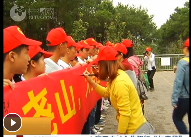 为迎接第六届桂林山水文化旅游节到来,10月15日上午,我校在国家首批4A级风景区尧山风景区,开展徒步尧山环保活动。校长易忠,学工部、校团委主要负责人,青年教工代表以及青年志愿者协会志愿者近70人参加了本次活动。桂林电视台对本次活动进行了报道。