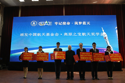 航天奖学金颁奖典礼上,中国航天科工集团公司、中国航天科技集团公司、航天基金会等单位嘉宾为30名荣获“航天奖学金”的学生颁发了30万元奖金。