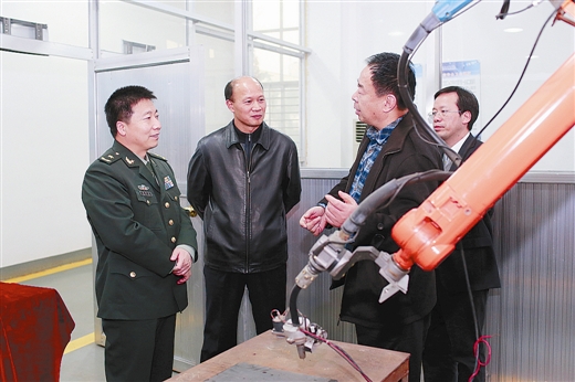 校党委书记李幼平与航天英雄杨利伟参观机器人应用实验室