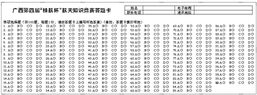 1.书面答题:在答题卡上准确填写本人信息,用钢笔或签字笔在答题卡上将正确答案涂黑,每位参赛者只允许提交一张有效答题卡(复印有效),否则视为无效答卷。答题卡请以集体或个人寄送的方式邮寄至华体会平台计算机科学与工程学院,地址:桂林市金鸡路2号,邮政编码:541004,联系人:毋作飞,联系电话:0773-2253022、2253021。