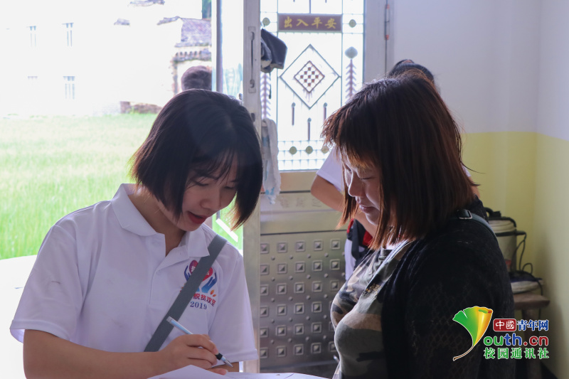 团队成员调查村民的普通话情况。中国青年网通讯员 李筱柯 摄