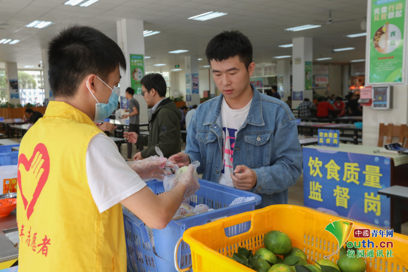 图为同学“光盘”后领取水果 中国青年网通讯员 殷颖杰 摄