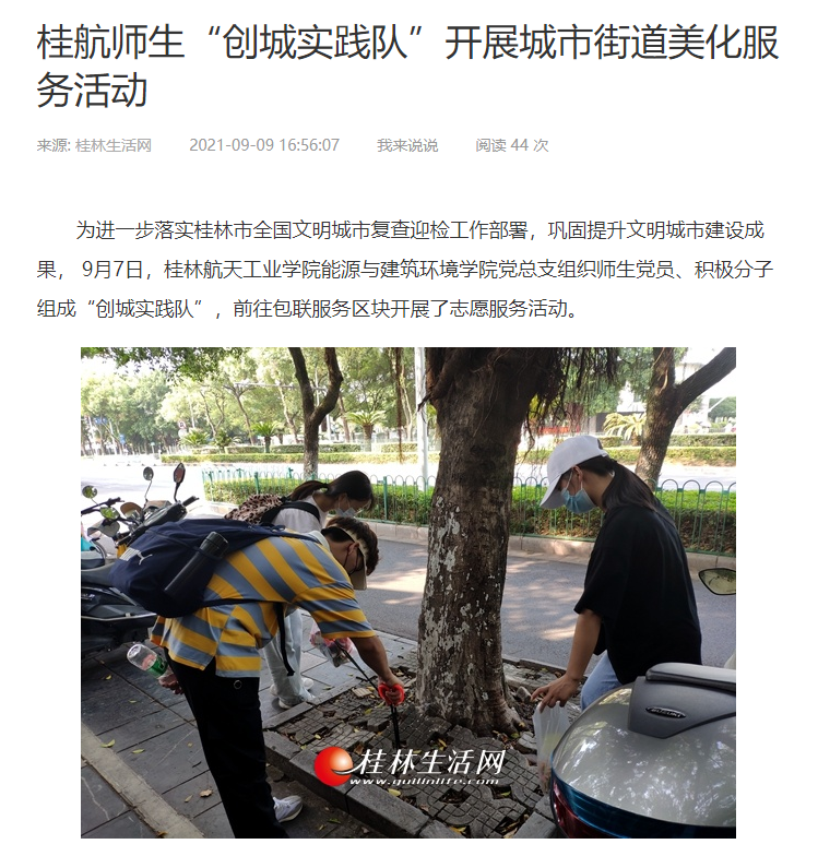 为进一步落实桂林市全国文明城市复查迎检工作部署,巩固提升文明城市建设成果, 9月7日,华体会平台能源与建筑环境学院党总支组织师生党员、积极分子组成“创城实践队”,前往包联服务区块开展了志愿服务活动。