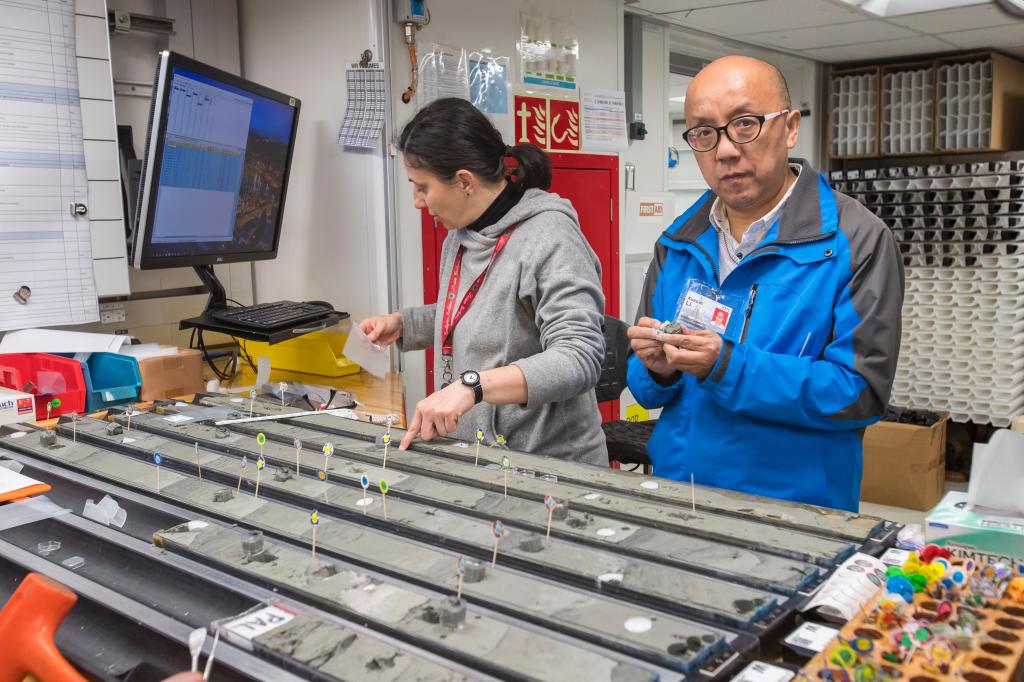 李学森博士在乔迪斯·决心号上采集古地磁样品