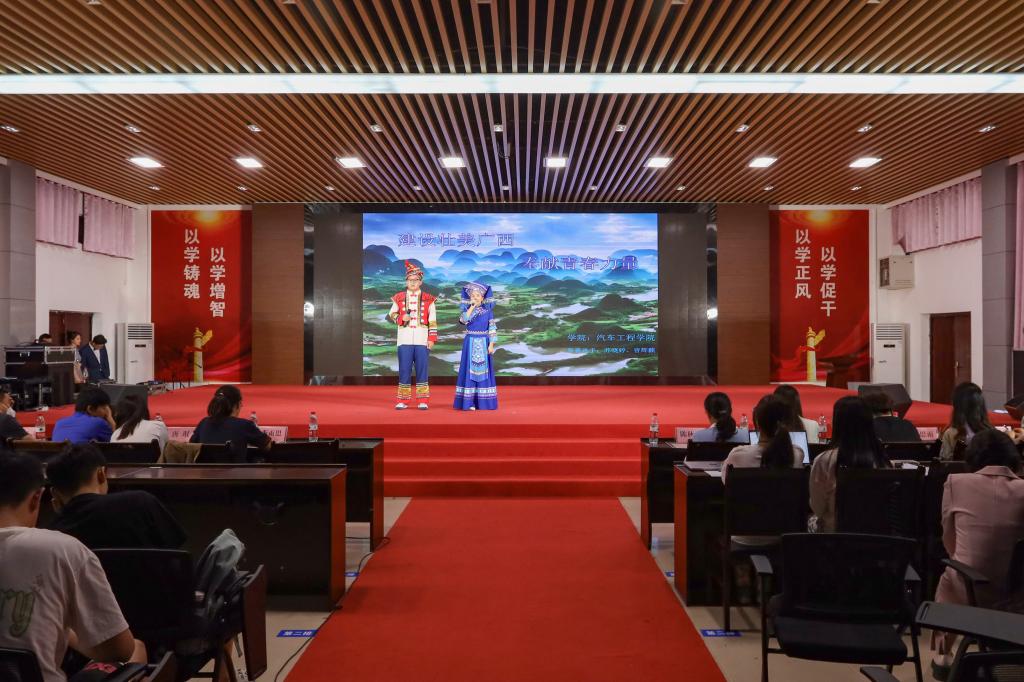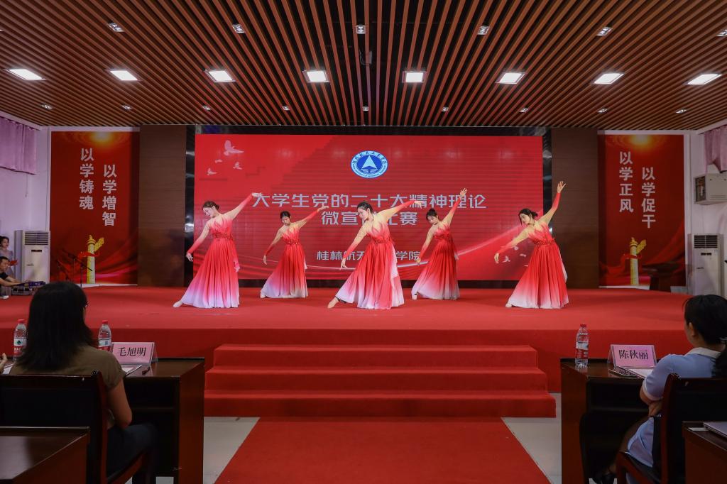 为全面深入学习贯彻习近平新时代中国特色社会主义思想,落实中央在全党深入开展主题教育的重要决策部署,引导广大青年学思践悟党的二十大精神,推动党的创新理论走进青年、深入人心,5月5日晚,我校举行大学生党的二十大精神理论微宣讲比赛。此次活动由学校党委宣传部主办,校团委协办,航空服务与旅游管理学院、马克思主义学院承办,邀请了七星区宣传部秦熙、桂林电子科技大学马克思主义学院赖立博士、桂林电视台主持人陈秋丽担任评委,党委宣传部、校团委、航空服务与旅游管理学院、能源与建筑环境学院相关负责人,以及500名学生代表出席了活动。