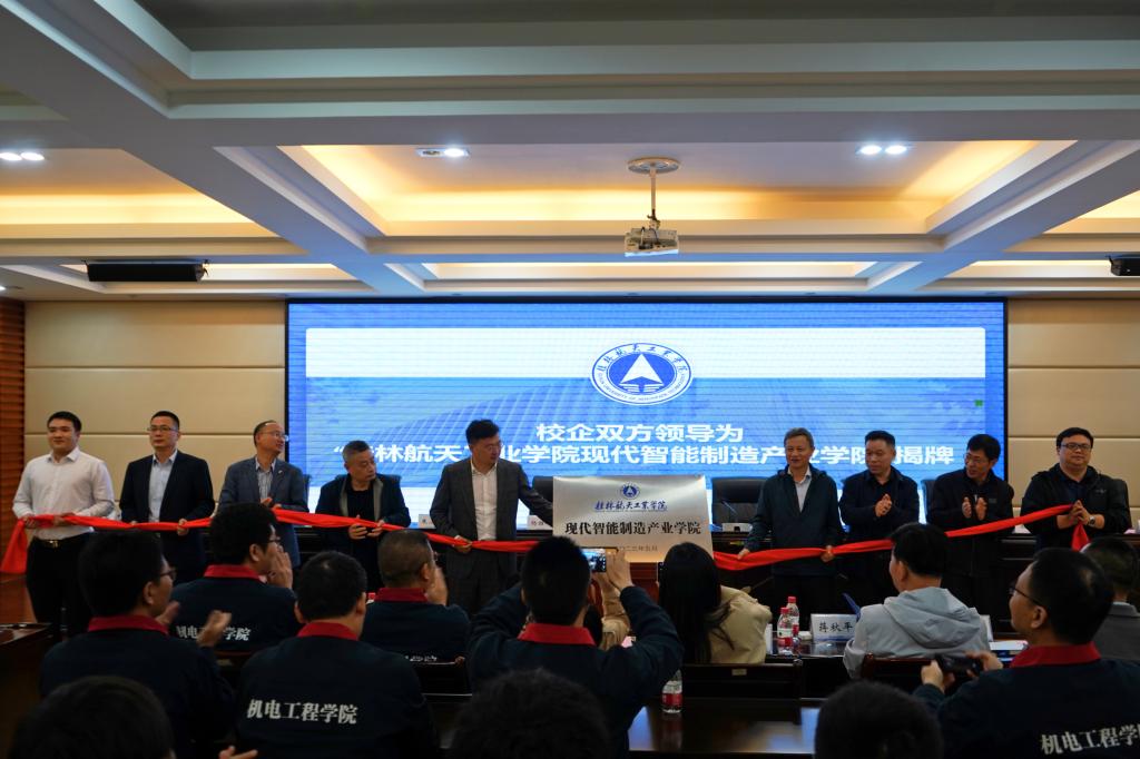 会上,五家企业分别与学校签订共建协议,孙山林宣布华体会平台现代智能制造产业学院成立。在与会成员的见证下,校企双方领导共同为“华体会平台现代智能制造产业学院”、“广西有色金属金属材料技术研究院”、“桂航-盛隆 创新创业工作室”、“江苏金彩高分子材料科技股份有限公司博士工作室”揭牌。
