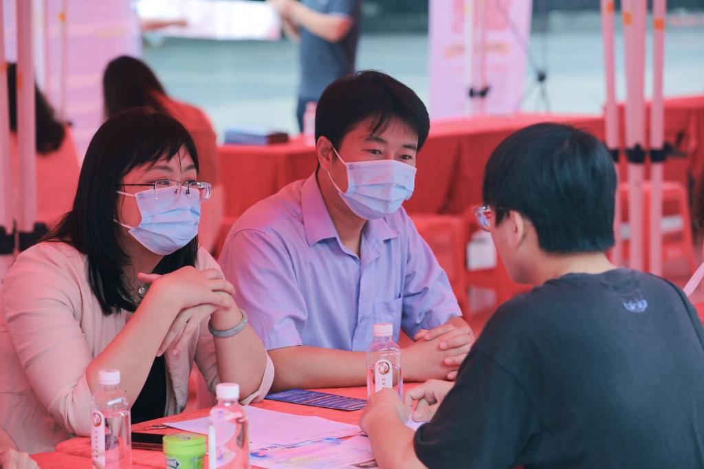 本次招聘会受到学校领导的高度重视,和区人社局一起积极与企业洽谈岗位需求,共组织了52家优质企业到场,提供机械工程师、测试工程师、产品设计师、市场营销、财务会计、储备干部等2000余个岗位,吸引我校众多毕业生咨询洽谈,学子们详细了解岗位要求、薪资待遇及工作环境等情况,就业指导中心积极指导学生应聘,现场气氛火热。