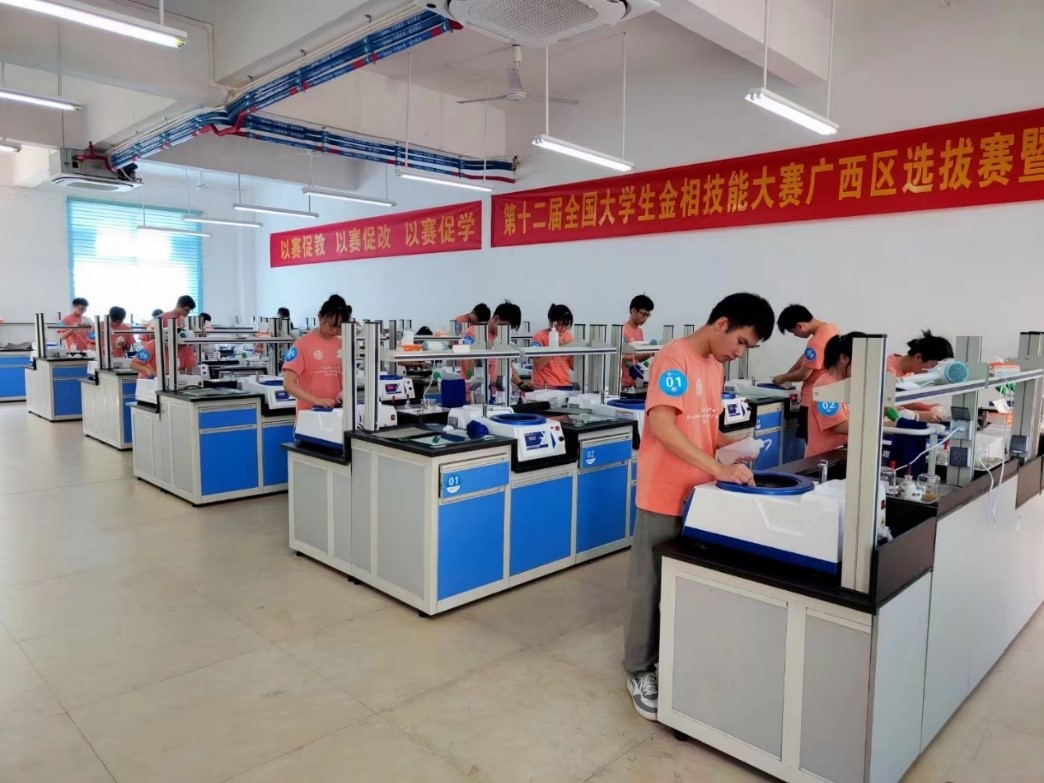 机电工程学院高度重视全国大学生金相技能大赛广西区选拔赛。自发布比赛通知起,共有100多名学生报名了本届全国大学生金相技能大赛。为在比赛中取得好成绩,在4个月的备赛过程中,学院先后组织了笔试比赛和校内选拔赛。学院指导老师充分利用休息时间,对参赛选手进行深入培训及指导,学生运用课余时间和假期刻苦训练,个人的技能水平和综合素质得到明显提升。