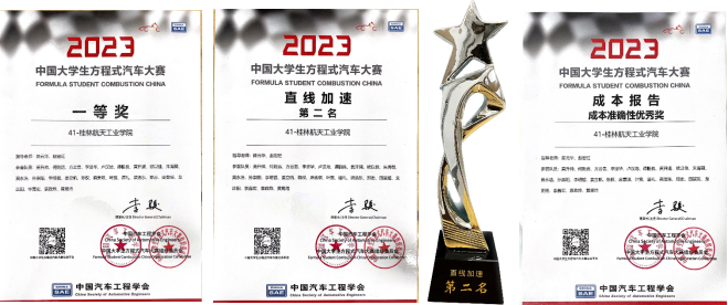 10月14日,由中国科学技术协会指导,中国汽车工程学会主办,襄阳市政府支持的2023中国大学生方程式汽车大赛在襄阳市东津新区华侨城奇速卡丁车运动公园圆满收官。经过四天的激烈角逐,我校航V车队最终以总成绩685.97分获得全国一等奖,并获得直线加速第二名、成本准确性优秀奖两项单项奖。