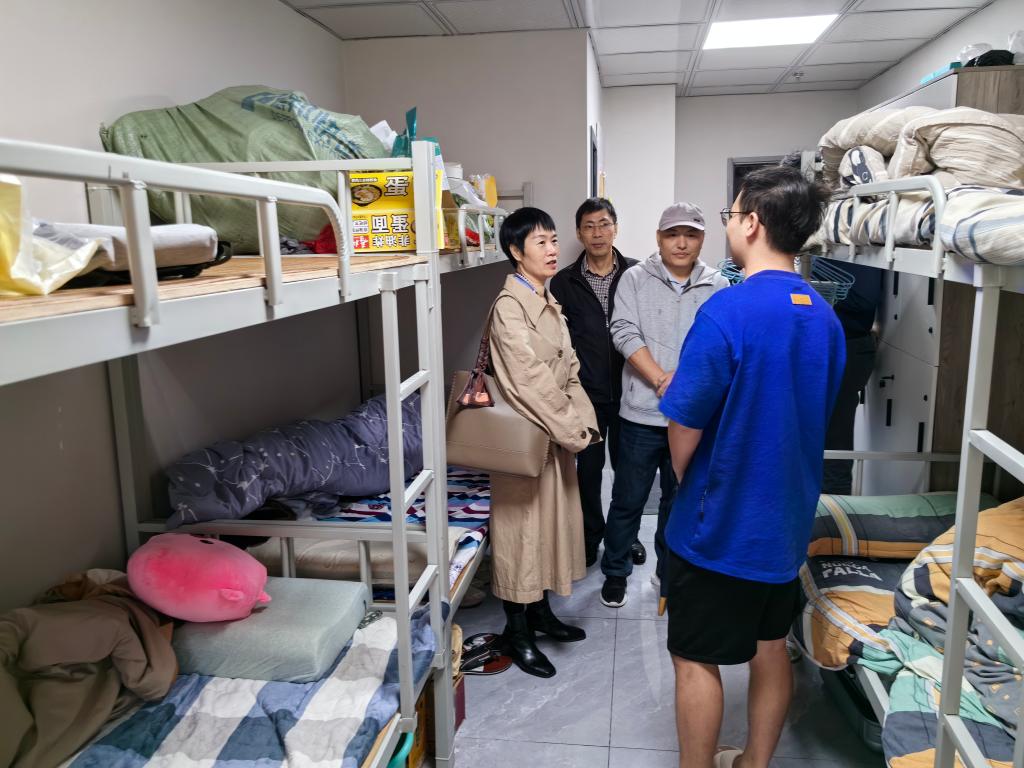 随后,吴江萍一行深入学生实践教学课堂,走进学生宿舍、食堂和生活服务区,与学生代表面对面访谈,充分了解学生在基地实习状况及学习和生活上遇到的困难。吴江萍鼓励学生们要在基地学好本领,锻炼动手能力和专业技能,成为学校应用型人才培养成果的有力见证者、展示者、推广者;强调要不断总结成功经验,让桂航-青软大数据学院的办学模式越来越好。