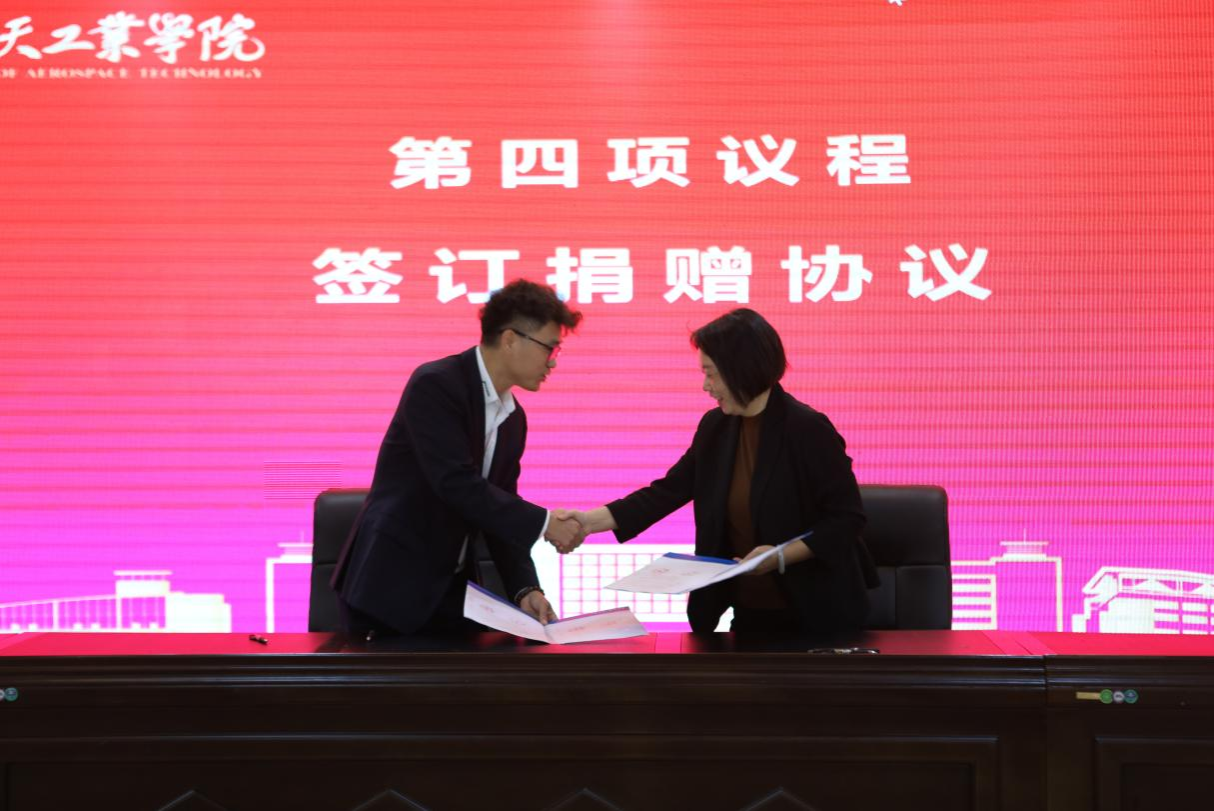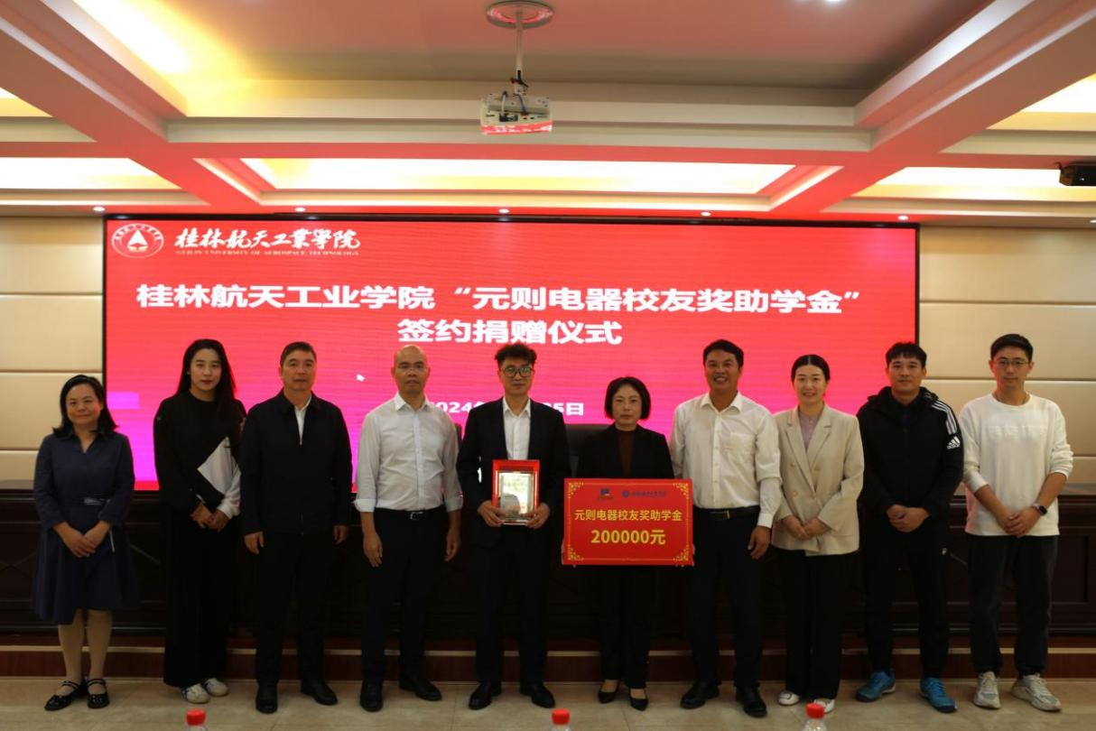 10月25日上午,华体会平台“元则电器校友奖助学金”签约捐赠仪式在南校区飞天楼520会议室举行。97届涉外会计专业毕业生、现任元则电器董事长吴坤向母校捐赠20万元奖助学金,旨在帮助困难学生更优的完成学业及实现职业发展梦想,并赠送刻有“展翼园”的景观石。副校长葛莉、校学工处、教务处、校友办以及各学院相关负责人共同出席本次捐赠仪式。