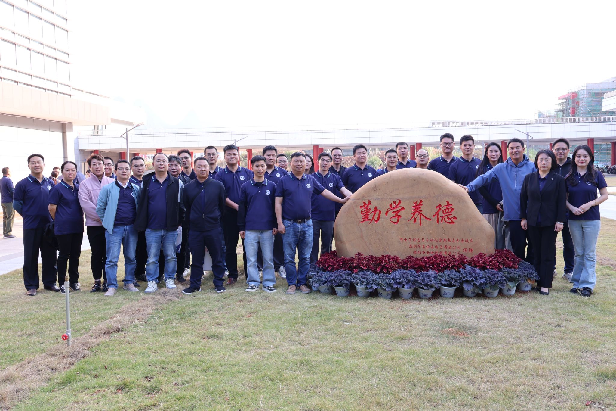 最后,校友们陆续参观了学校图书馆、校史馆、航天博物馆等校园场景,见证了学校在科技服务方面取得的成果,同时也感受着母校发展的欣欣向荣。在启天楼广场,校友们共同种下了纪念树,并立下纪念碑“勤学养德”,表达校友对学校培养的感激之情。