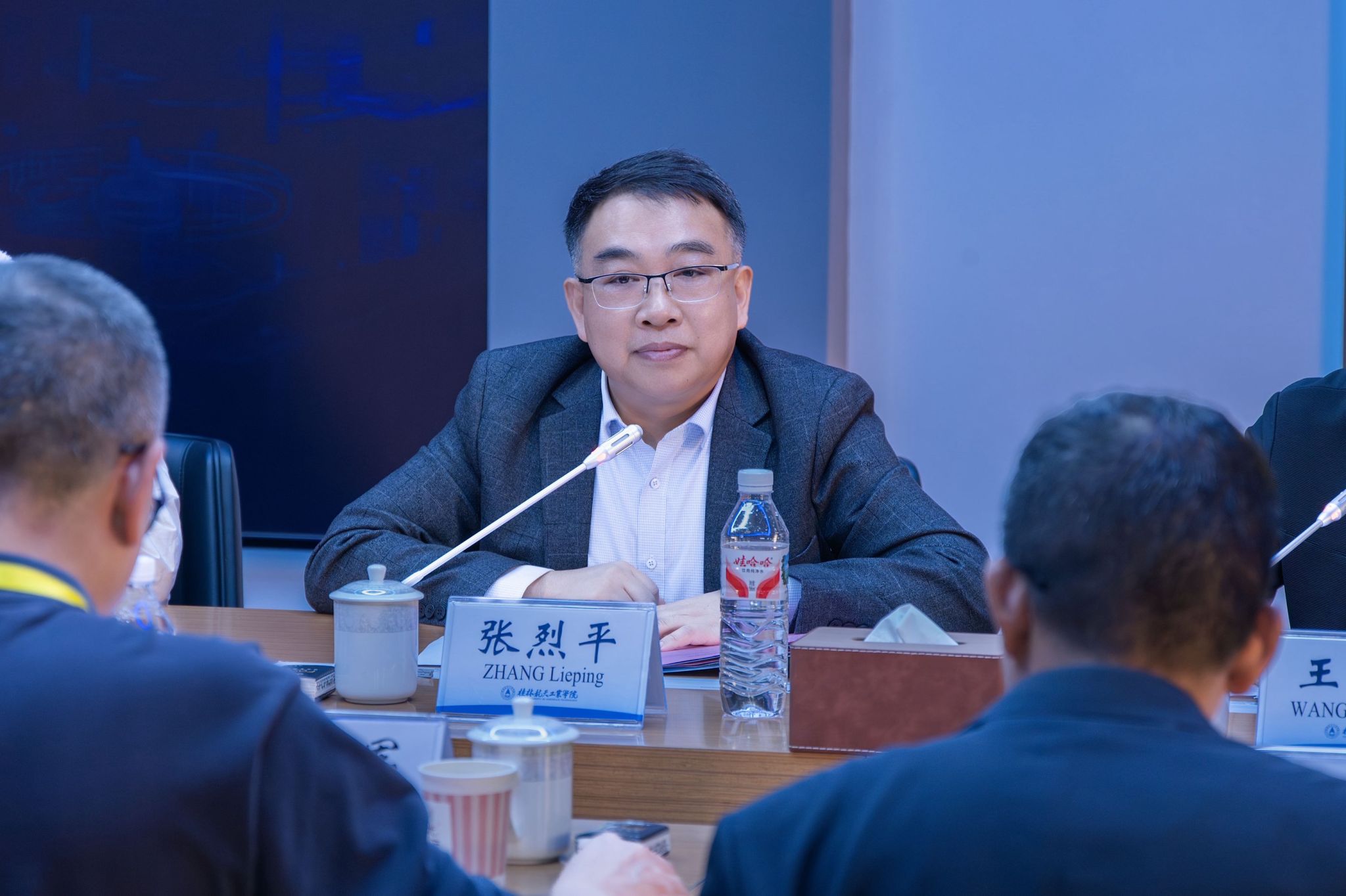 活动分为成果展示与座谈交流两个环节。在成果展示环节,重点介绍了在低空科技领域的教学科研成果,并组织了无人机试飞演示。现场展示了无人机在控制精度与飞行稳定性方面的优异性能,以及在农业喷洒、物资运输等场景中的实际应用,充分彰显了学校在该领域的技术积累。在座谈交流环节,张烈平对与会嘉宾表示诚挚欢迎,并强调了中国与东盟国家在人工智能领域深化创新合作的重要意义。他表示,学校将以此次研修班为重要契机,积极构建与东盟国家在科研协作与人才培养方面的合作桥梁,共同推动人工智能技术的进步与落地应用。